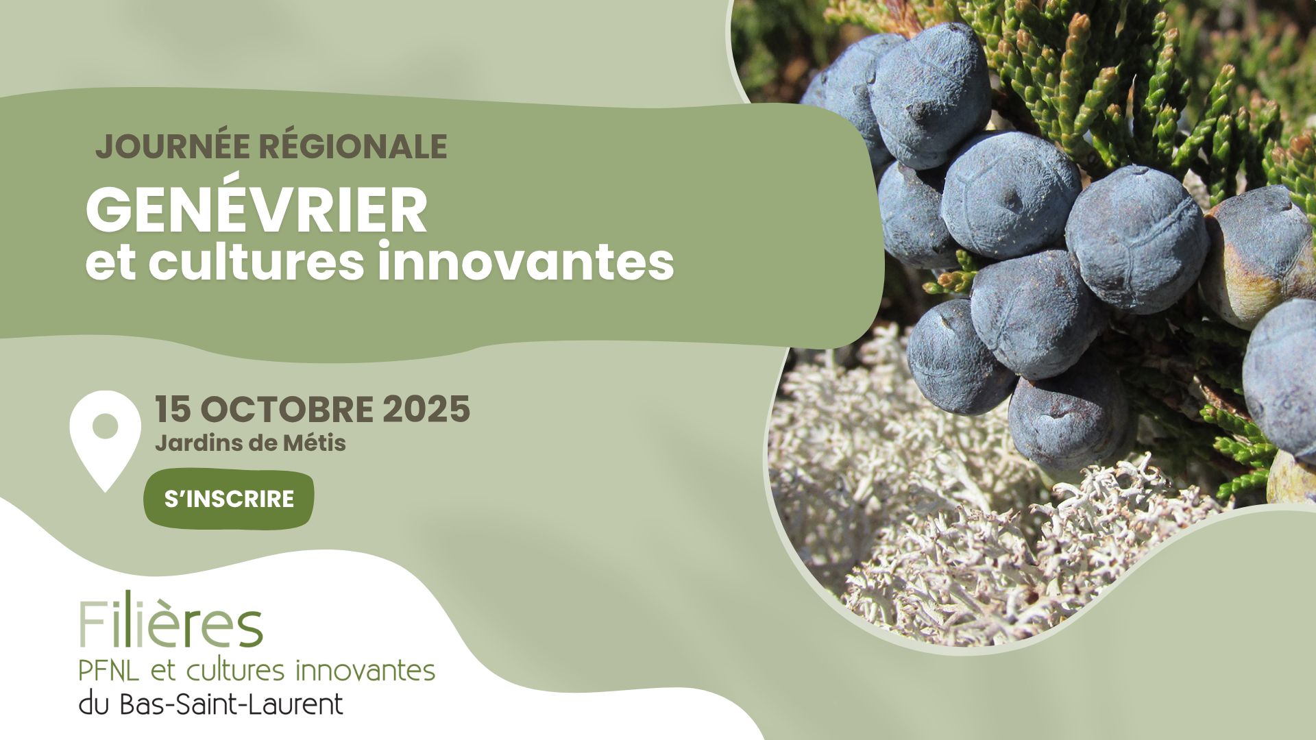 Découvrez l’univers du genévrier et des aromates émergents à travers une journée unique de partage, d’exploration et de valorisation de cette filière en plein essor au Bas-Saint-Laurent. 🌱